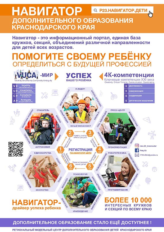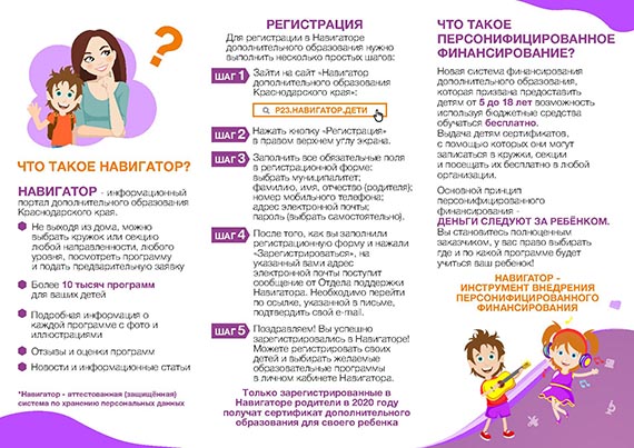 На сайте «Навигатор дополнительного образования детей Краснодарского края» https://р23.навигатор.дети/ вы узнаете, как формируется и используется единое информационное пространство в сфере дополнительного образования детей Краснодарского края.