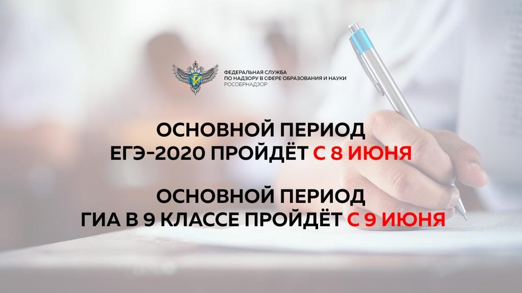Срок начала основного периода ЕГЭ-2020 будет перенесен на 8 июня, ОГЭ-2020 – на 9 июня